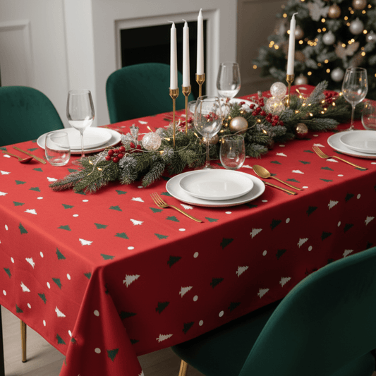 Božićni stolnjak Zimska kapelica i jeleni 140×220 cm