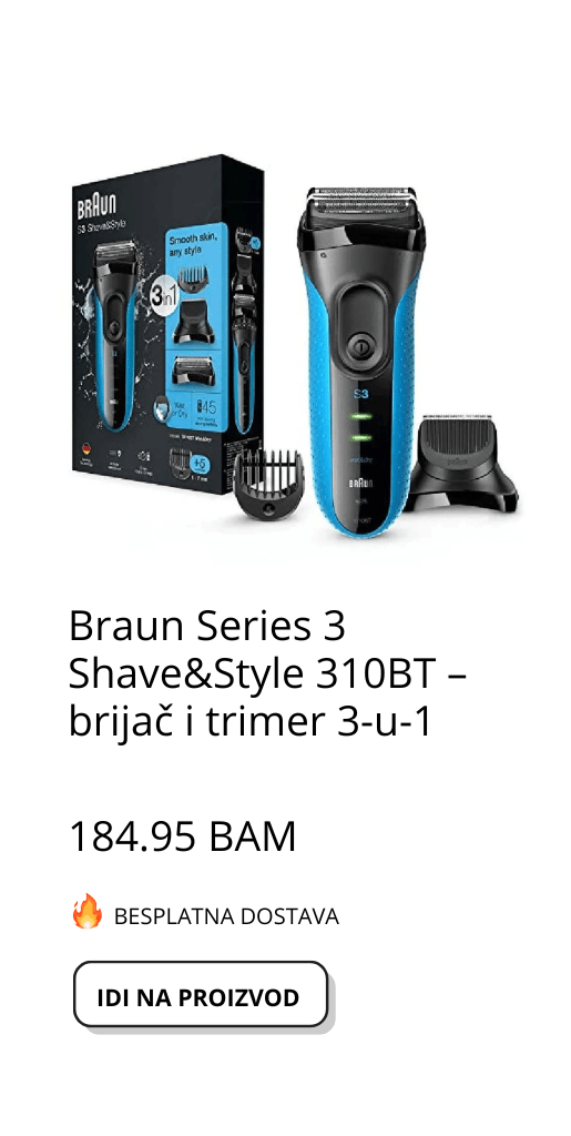 Braun Series 3 Shave&Style 310BT – električni brijač i trimer 3-u-1, Wet&Dry funkcijom, 5 češljeva