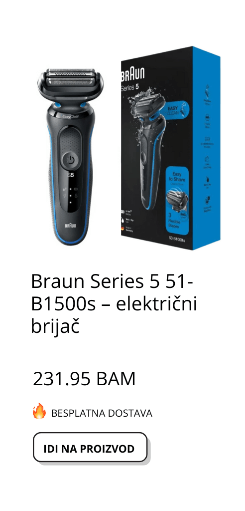 Braun Series 5 51-B1500s – električni brijač s fleksibilnim oštricama, AutoSense tehnologija, EasyClean, 50 min bežični rad, plave boje, vodootporan