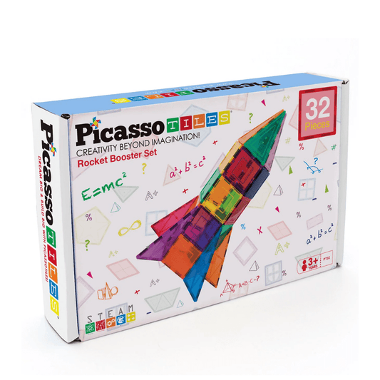 PicassoTiles magnetne kocke – Rocket Booster set (32 dijela, 3+) raketa od prozirnih pločica