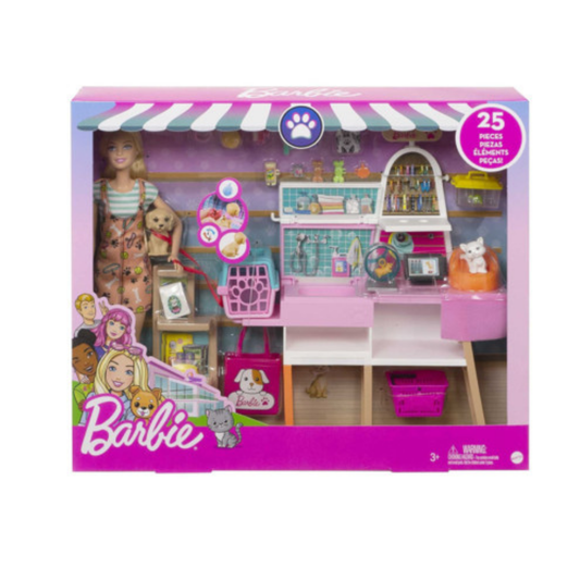 Barbie Pet Shop – set s ljubimcima, lutkom i 25 dodataka