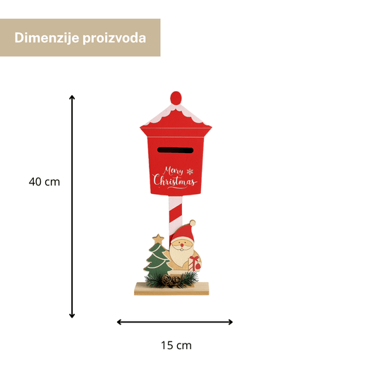 Drvena ukrasna dekoracija – poštansko sanduče s motivom Djeda Mraza, stojeći ukras 40 cm