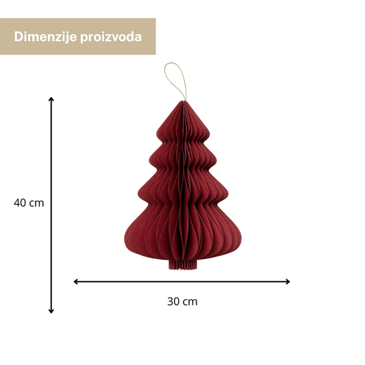 Decoris papirnata jelka crvena 40×30 cm – sklopiva božićna dekoracija za vješanje ili stol