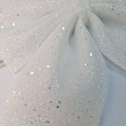 Decoris ukrasna mašna bijela s glitterom 20×24 cm – ukras za bor, vijence, girlande i poklone