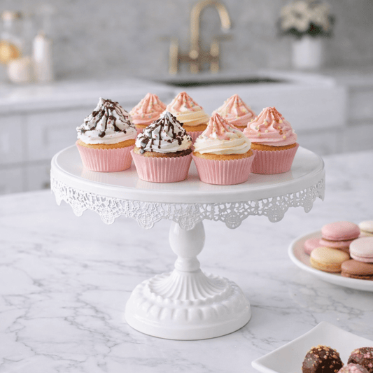 Stalak za tortu i kolače 24 cm – bijeli, metalni