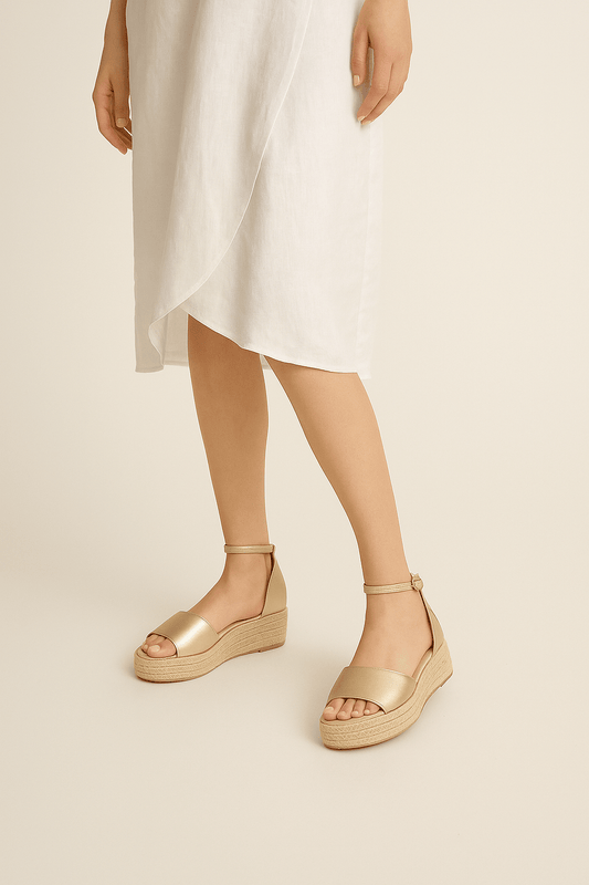 BODYFLIRT Zlatne platforma sandale s remenom oko zgloba