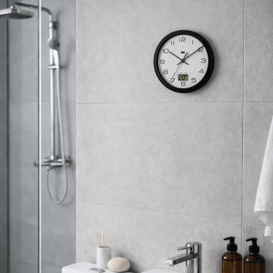 Zidni sat za kupatilo – s termometrom, montaža na vakuum