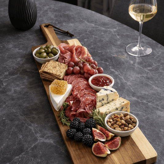 Crofton daska za serviranje i rezanje – drvena, dugačka s ručkom i vezicom