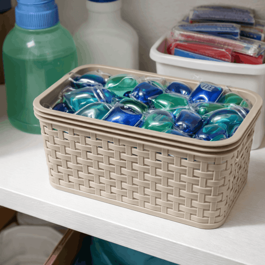 Plastična korpica za organizaciju 20 × 14 cm – bež, pleteni izgled