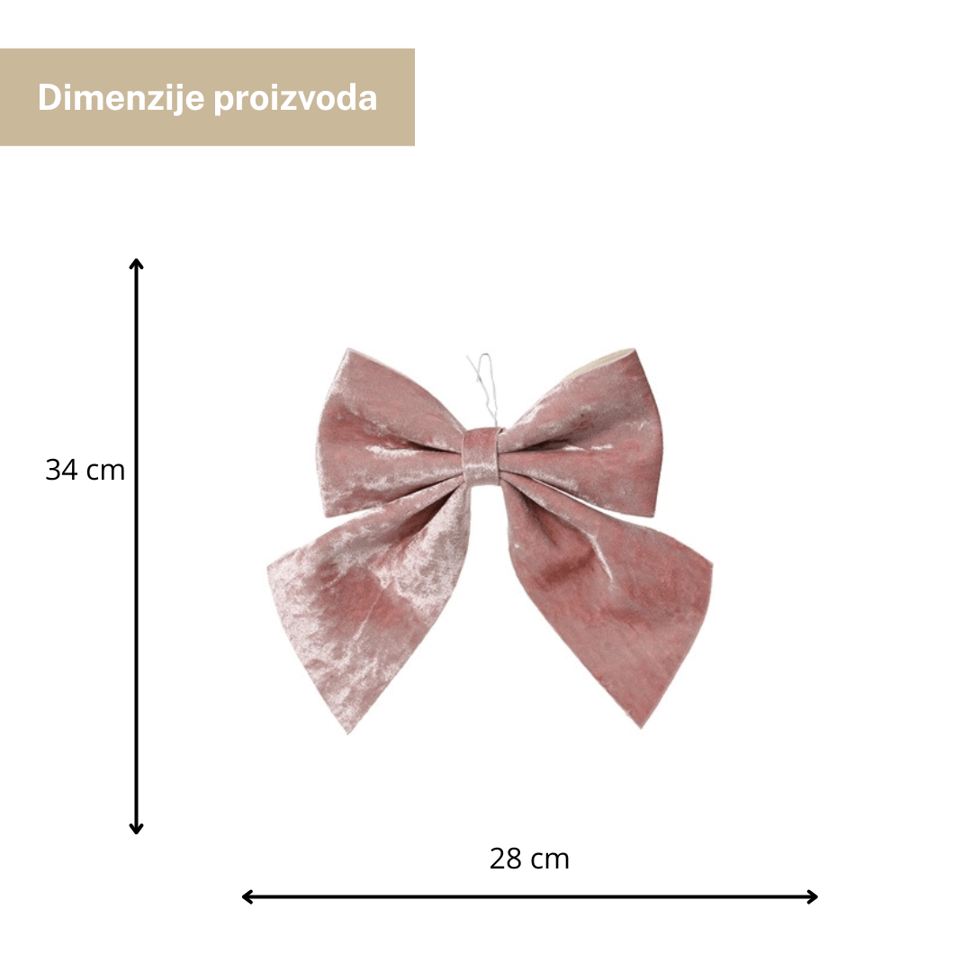 Baršunasta ukrasna mašna 28 x 34 cm – staro ružičasta, ukras za bor, vijence i poklone
