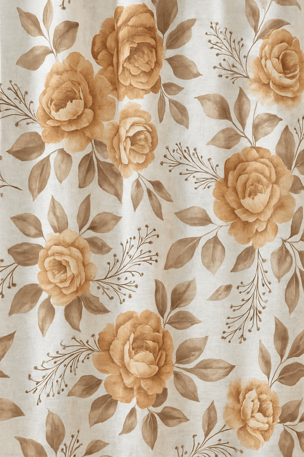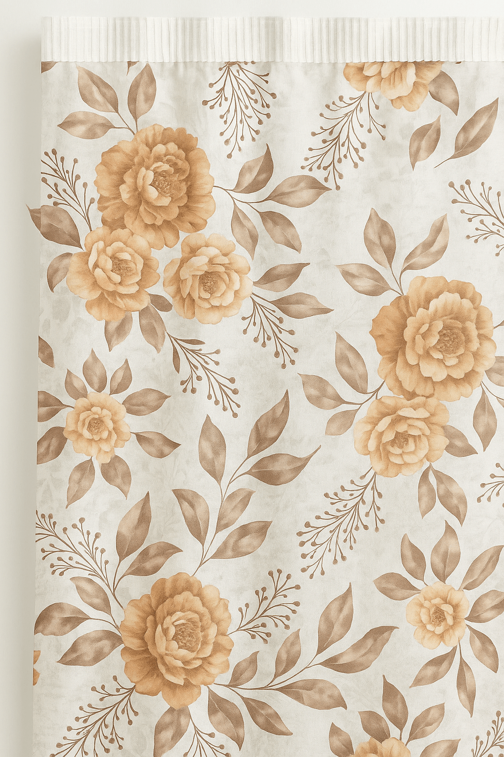 Zavjesa s uzorkom ruža i grančica, izrađena od 100% poliestera. Model s trakom za vješanje omogućava postavljanje na klasične karniše.