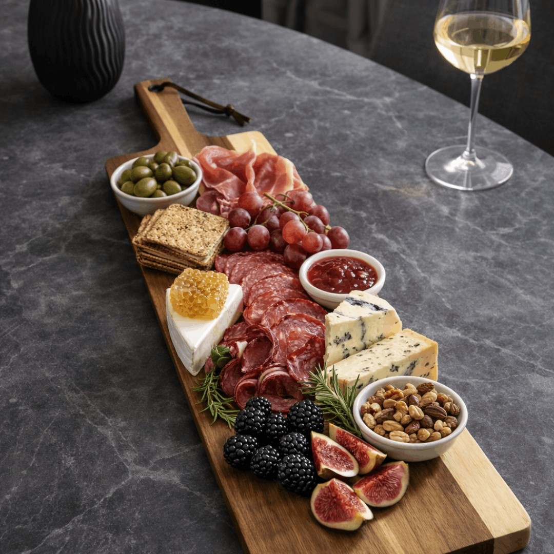 Crofton drvena daska za serviranje i rezanje namijenjena je za posluživanje narezaka, sireva, voća i zalogaja, kao i za svakodnevnu pripremu hrane. Dugački oblik s ručkom olakšava nošenje i serviranje, a vezica omogućava da se daska objesi i bude uvijek pri ruci. Prirodni izgled drveta lijepo se uklapa u kuhinju i na stol.