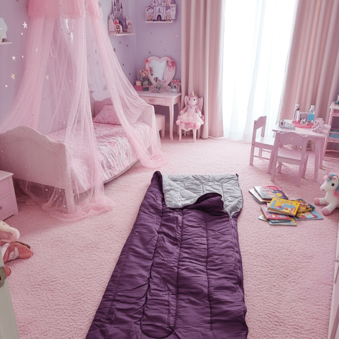 Praktična i udobna vreća za spavanje namijenjena djeci, dimenzija 70 x 170 cm. Izrađena je u kombinaciji ljubičaste i sive boje, što joj daje moderan i neutralan izgled. Vreća ima dvostranu funkciju – može se koristiti kao klasična vreća za spavanje ili rasklopljena kao pokrivač.