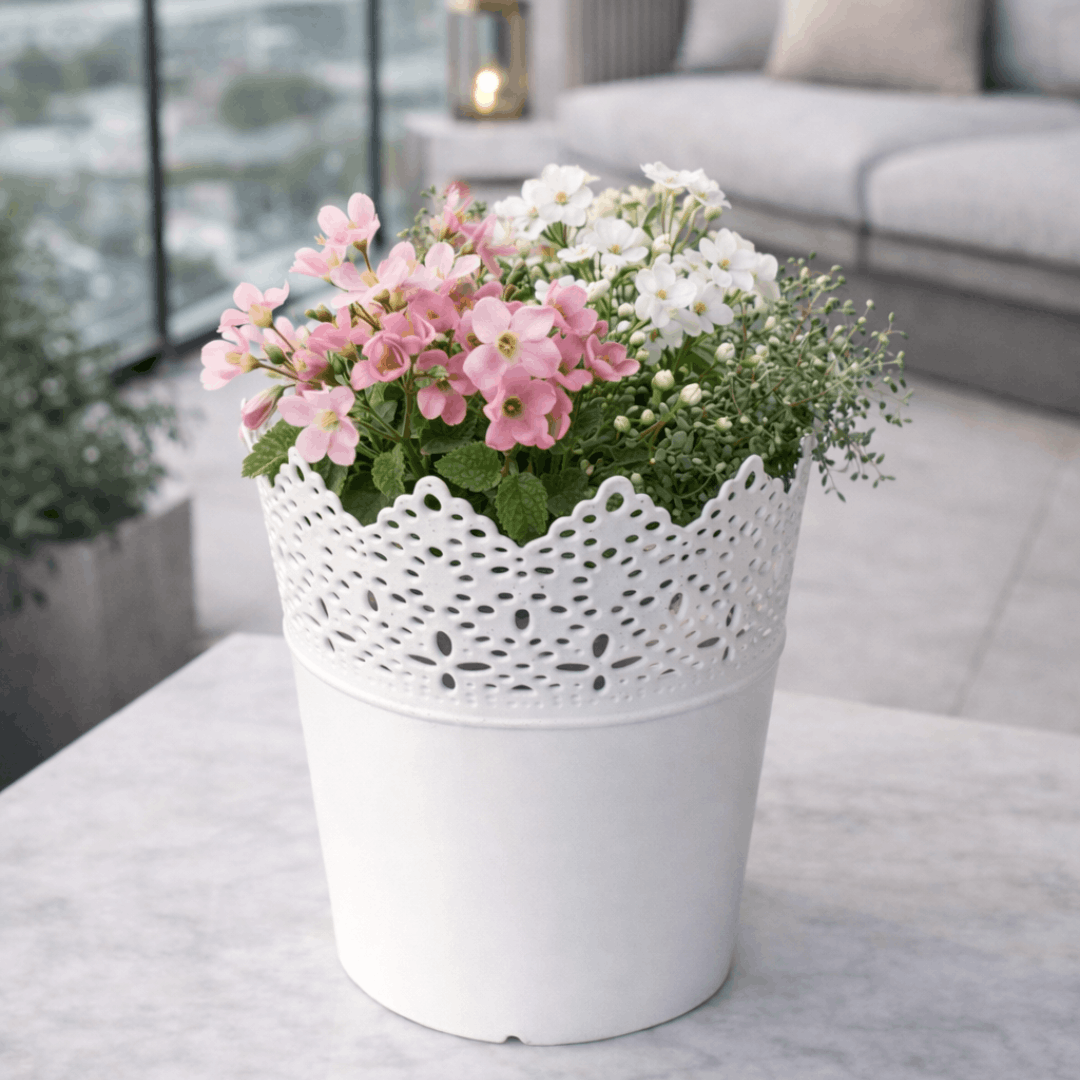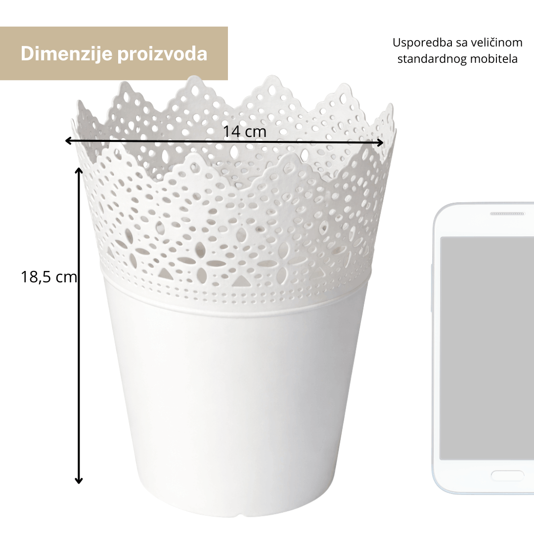Saksija/ukrasna posuda bijela 18,5×14 cm (čipkasti rub) - pvc