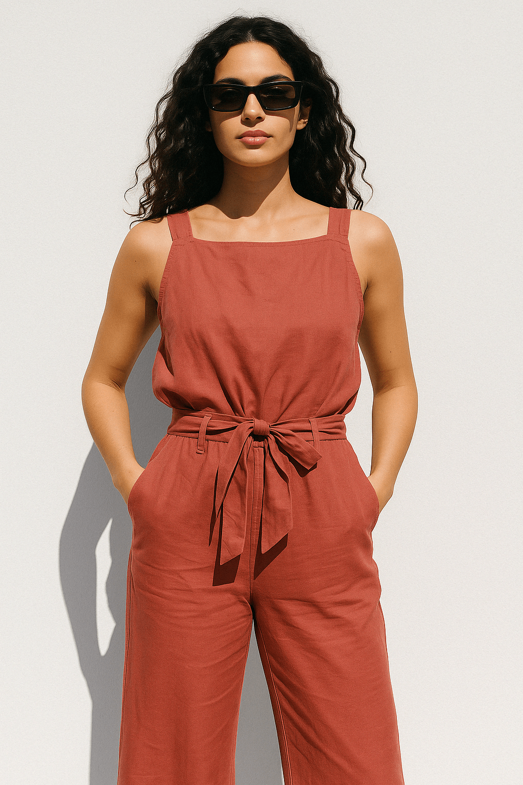 Kombinezon od mješavine lana i pojas u struku
