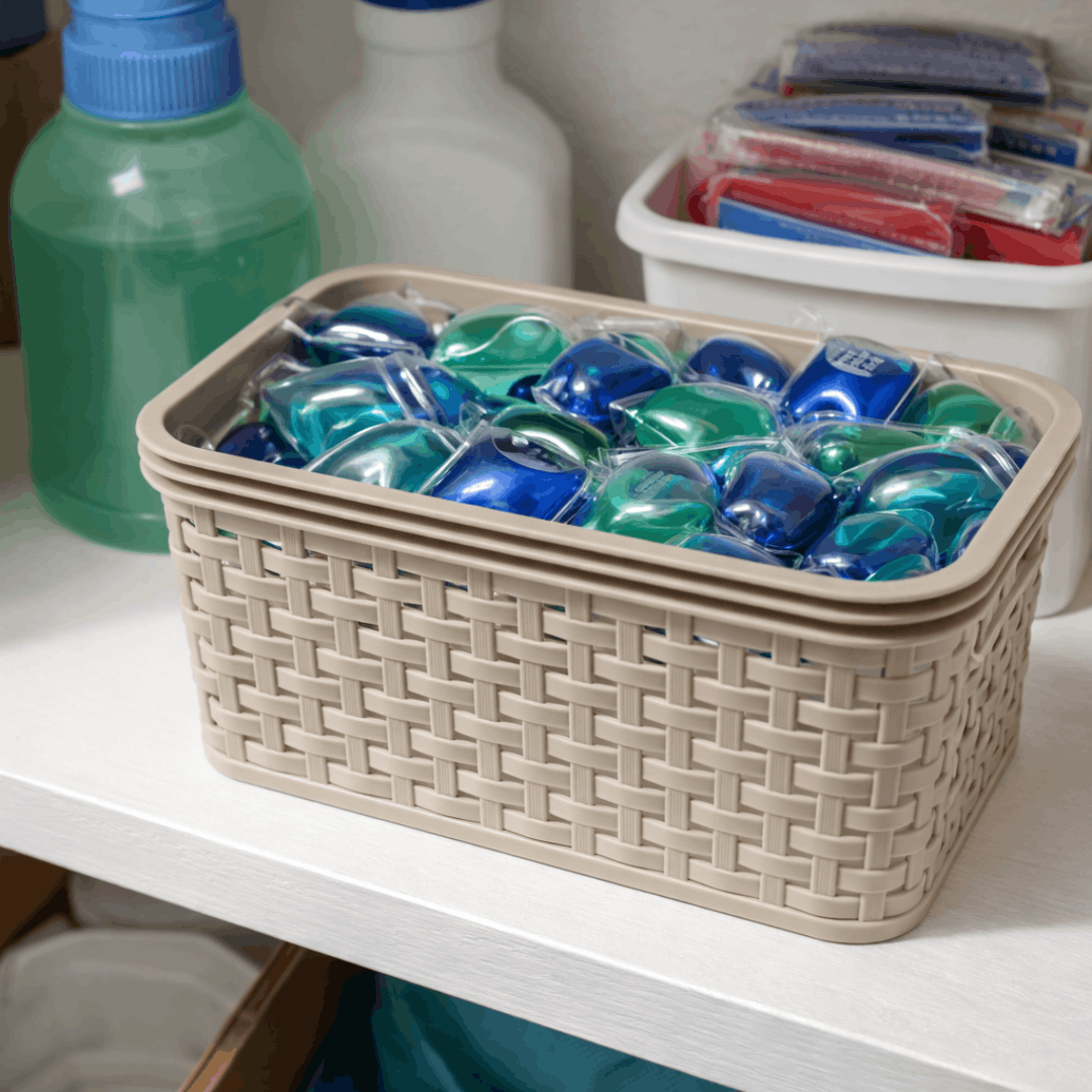 Plastična korpica dimenzija 20 × 14 cm praktična je za organizaciju sitnica u kuhinji, kupatilu, ormaru ili ladicama. Dizajn s “pletenim” izgledom uklapa se u većinu prostora. Laka je za održavanje i pogodna za svakodnevnu upotrebu.
