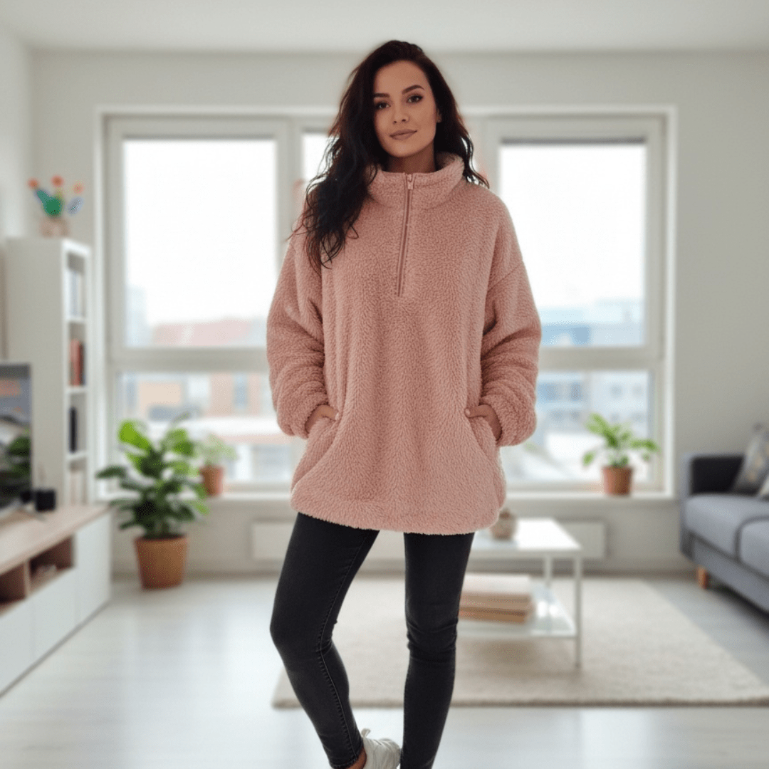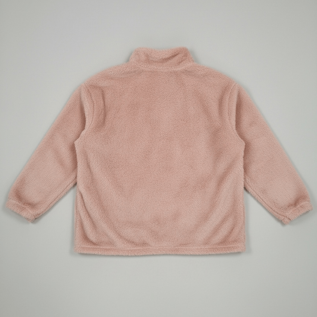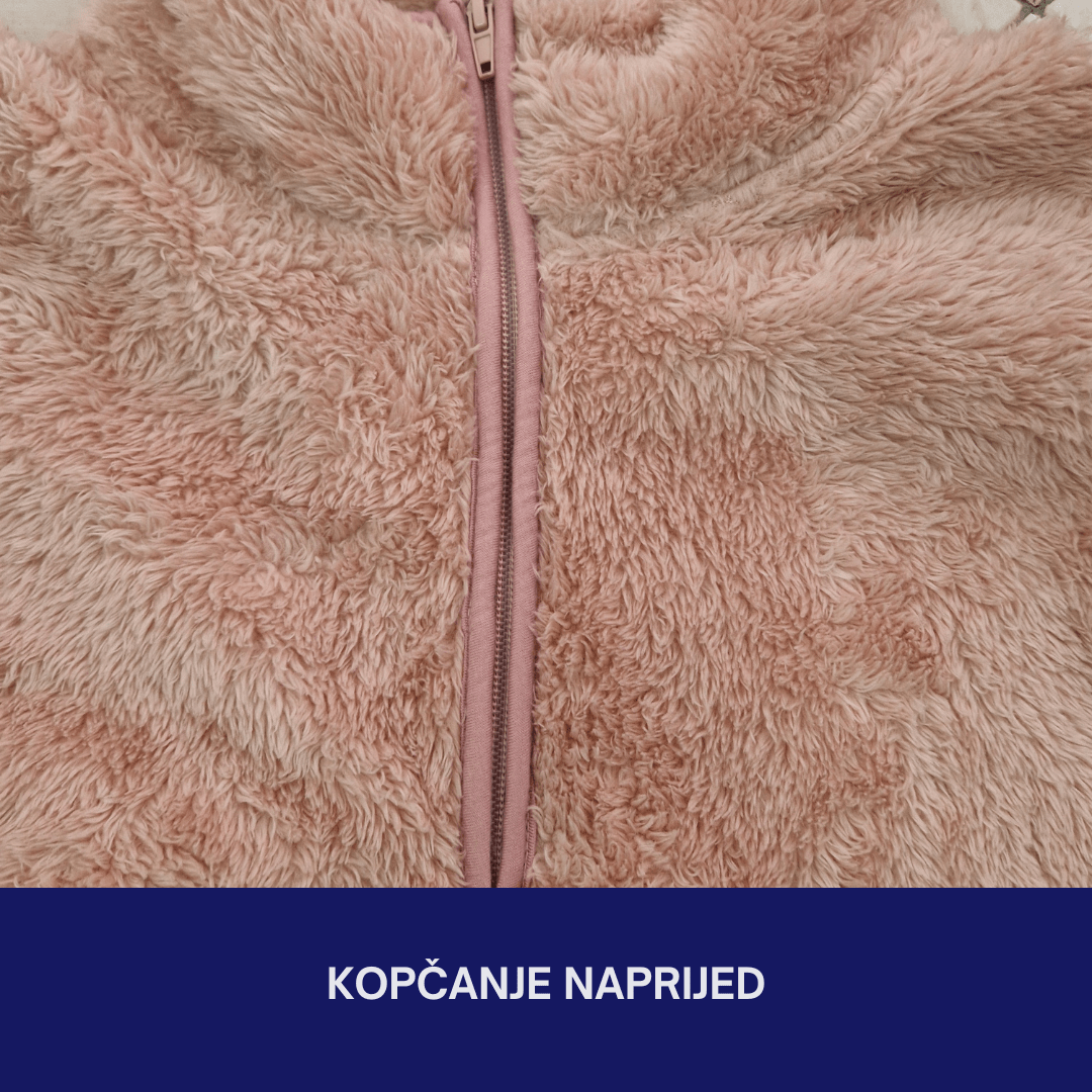 Mekana ženska teddy majica – topla, plišana dukserica u puder rozoj boji na kopčanje naprijed
