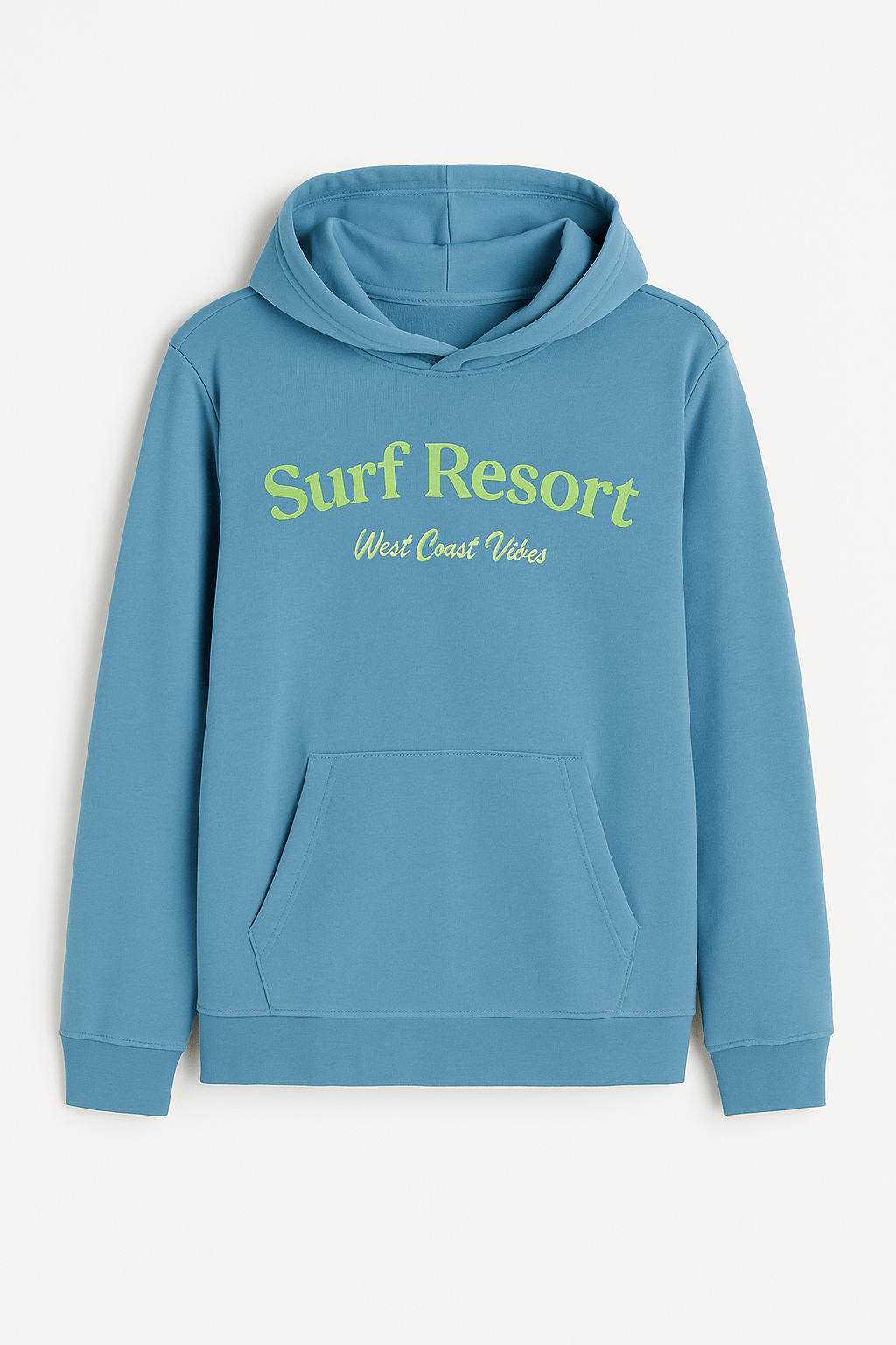 Dukserica od pamuka i poliestera ima kapuljaču, prednji džep i print „Surf Resort“ na prsima.