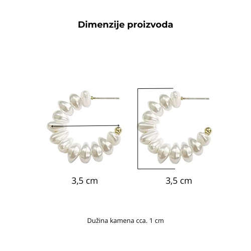 Okrugle metalne naušnice sa biserima, C oblika, vrlo lagane, materijal metal, modni nakit. Veličina je 3,5 x 3,5 cm.