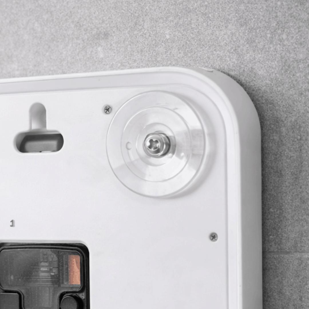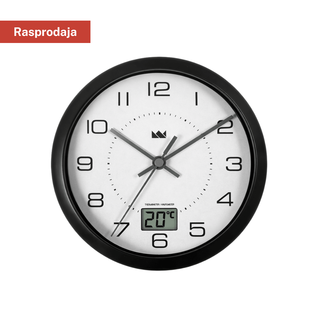 Zidni sat namijenjen je za kupatilo i vlažne prostorije. Ima veliki analogni brojčanik za lako očitavanje i mali digitalni prikaz temperature. Montira se bez bušenja pomoću vakuum nosača (prijanjanje na glatke pločice), pa je praktičan za tuš kabinu, WC i kupatilo.