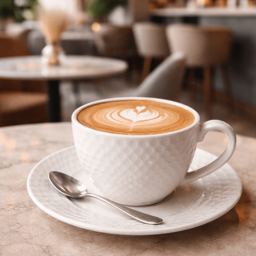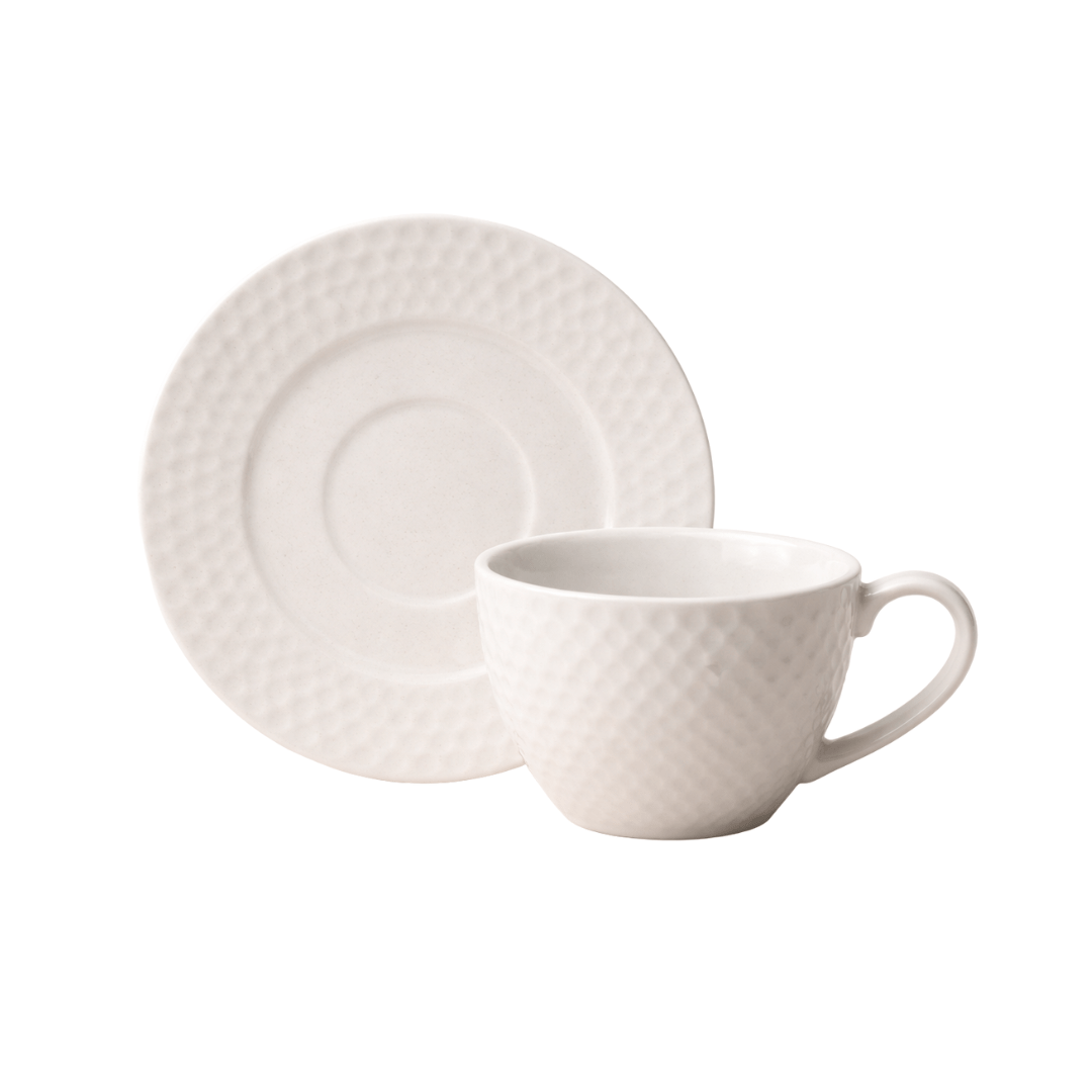 Set šoljica sa tacnama 6/1 – bijele, reljefni uzorak