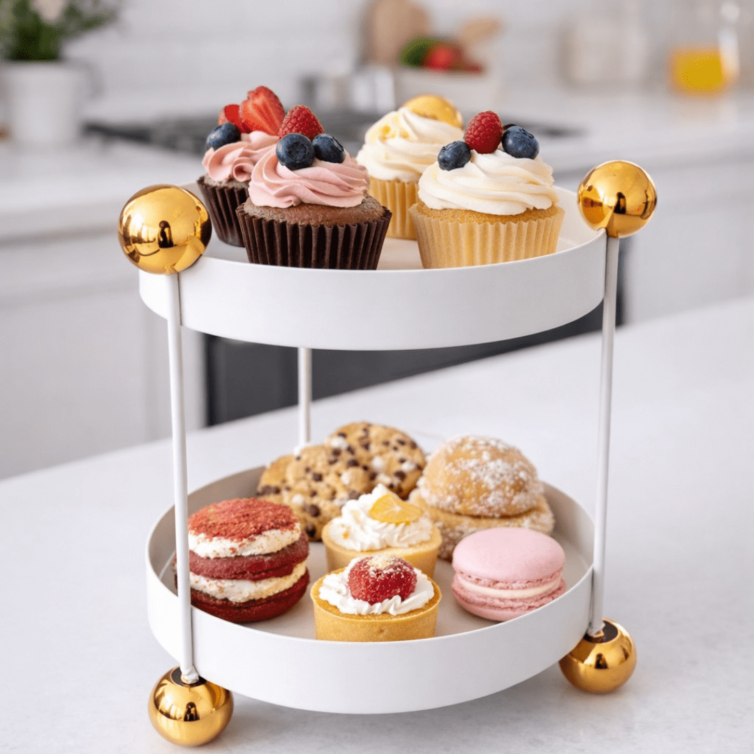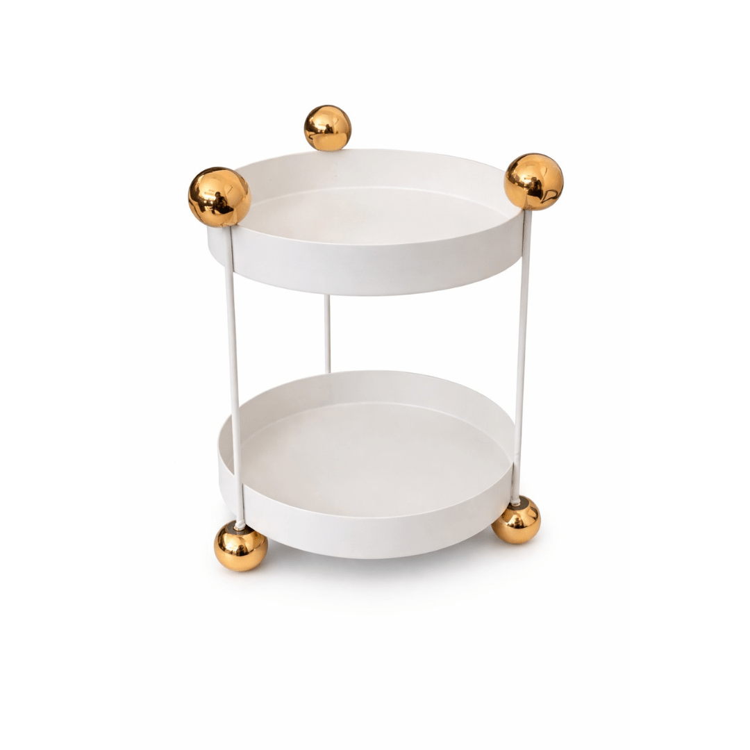 Mali metalni dvoslojni okrugli organizator 18x25 cm – bež sa zlatnim detaljima
