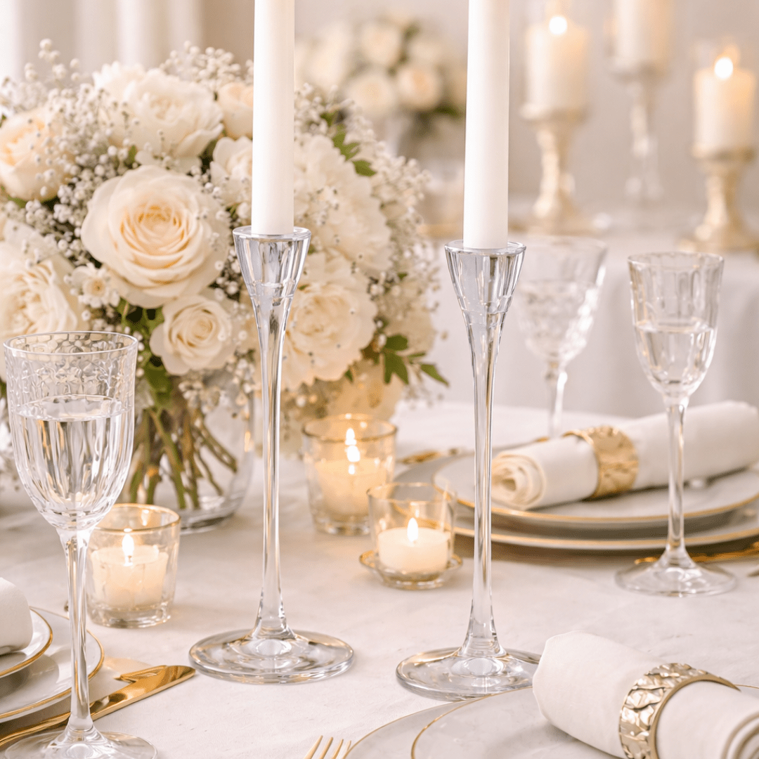 Set stakleni svijećnjaka (2 kom) – prozirni držači za tanke svijeće