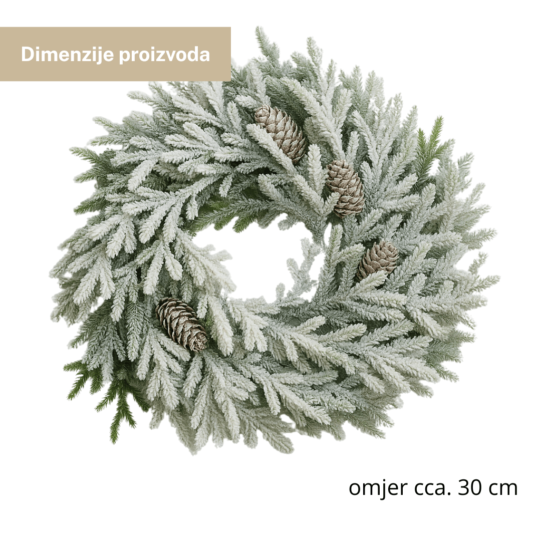 Vijenac s efektom snijega – 30 cm, borove grančice i šišarike