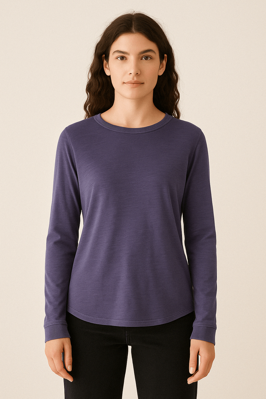 Majica dugih rukava s prorezima sa strane rukava. Ima širi okrugli izrez oko vrata. Donji rub je lagano zaobljen. Na bočnim stranama zaobljeno. Rukavi završavaju s dodatnim prošivenim rubom. Majica je izrađena od laganog, blago rastezljivog materijala.