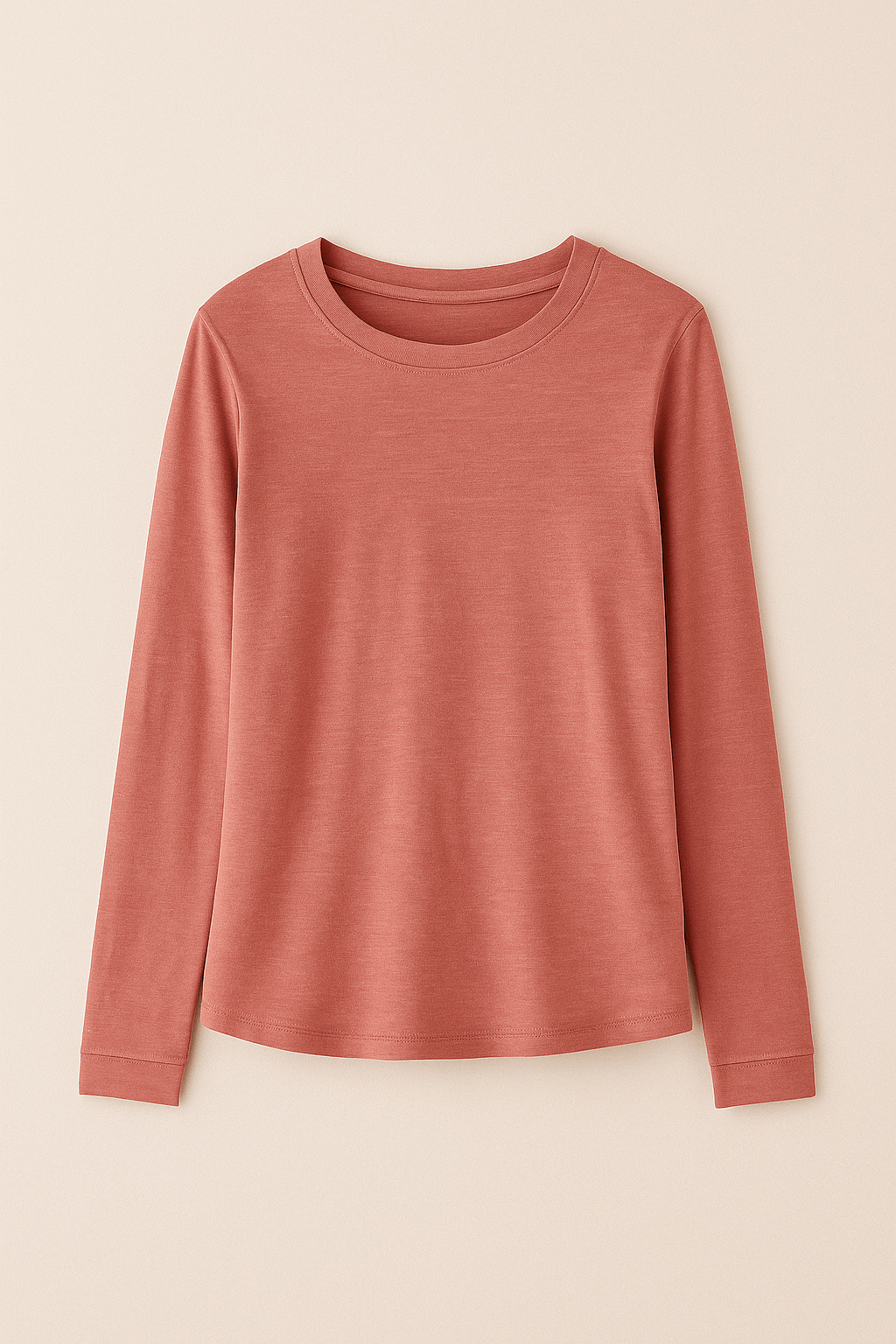 Majica dugih rukava s prorezima sa strane rukava. Ima širi okrugli izrez oko vrata. Donji rub je lagano zaobljen. Na bočnim stranama zaobljeno. Rukavi završavaju s dodatnim prošivenim rubom. Majica je izrađena od laganog, blago rastezljivog materijala.