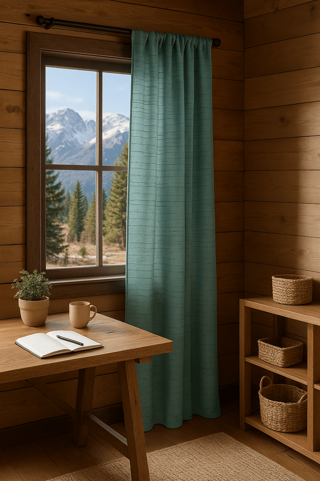 Zelena prozirna zavjesa s trakama za kačenje – reciklirani poliester
