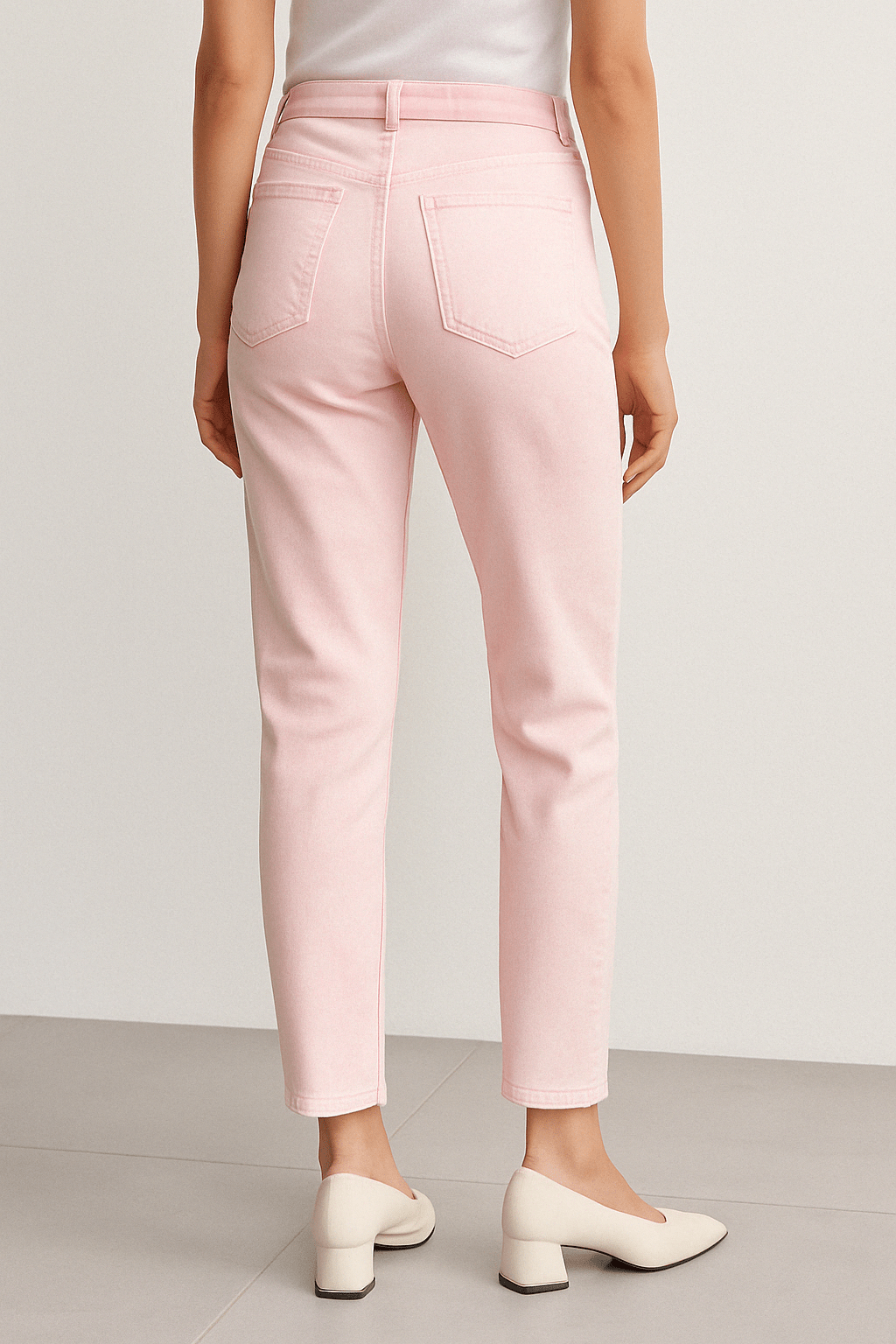 Vrsta: Ženske hlače ispranog izgleda od pamuka u svijetloružičastoj boji