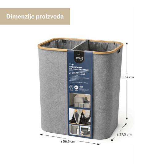 Košara za rublje s 2 unutrašnje vreće (2 odjeljka) – 2×70 L – 56,5×67×37,5 cm – s poklopcem